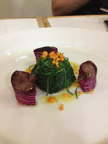 這是一個豐盛的法式餐點,前菜、主菜、甜點一道道的呈現,頗有架式。